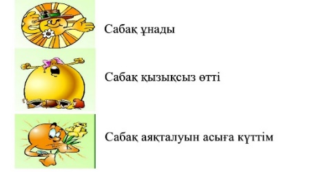 Өз көңіл күйлерін бейнелеген стикерге сабақтан алған әсерлері мен ұсыныстарын жазу тапсырылады.