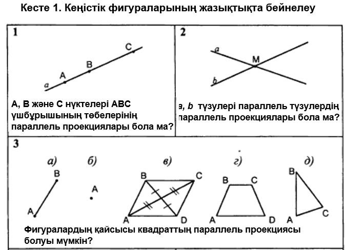 Дескриптор: - ортогональ проекцияларды қажетті сызбаны дұрыс салады