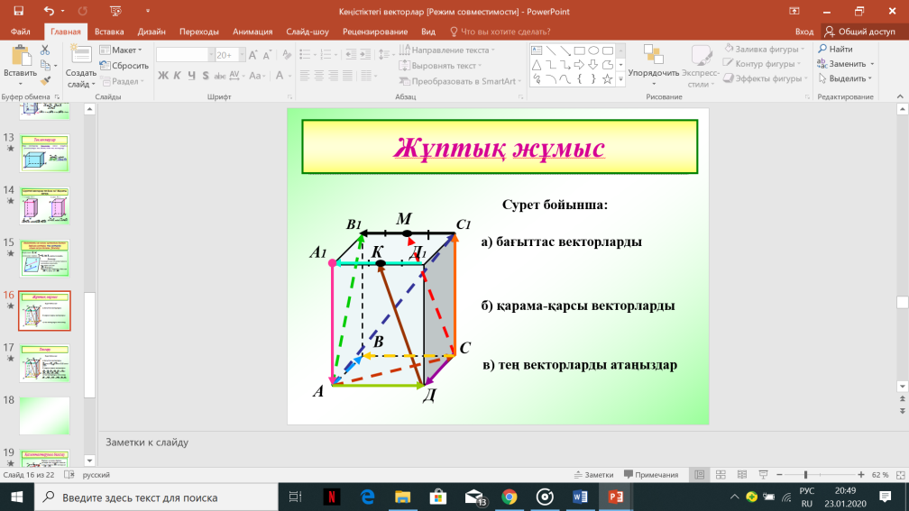 Сабақтың тақырыбы: Кеңістіктегі векторлар және оларға амалдар қолдану. Коллинеар және компланар векторлар