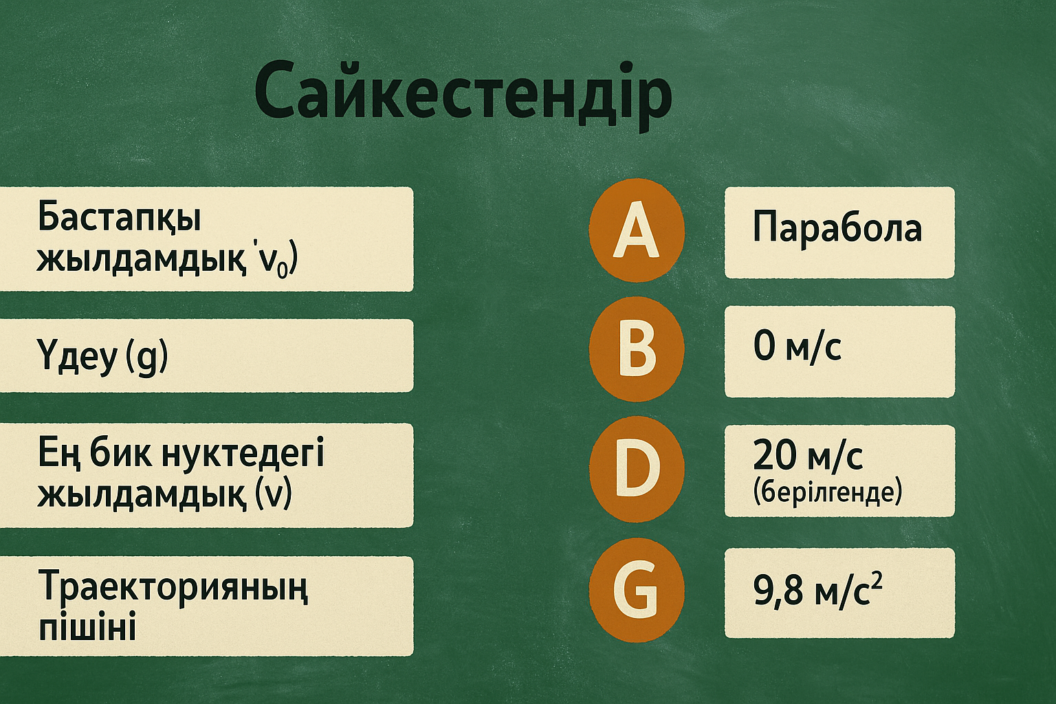 Ауа кедергісі еленбейді. g = 10 м/с².