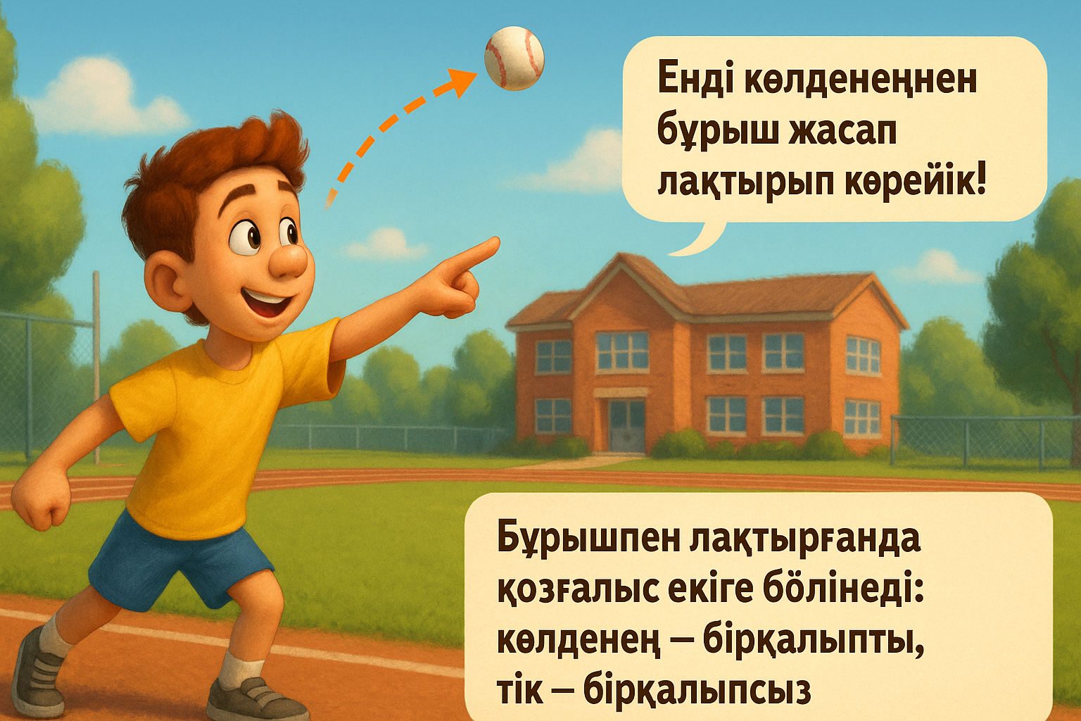Мұндағы v₀ – бастапқы жылдамдық, α – лақтыру бұрышы, t – уақыт.