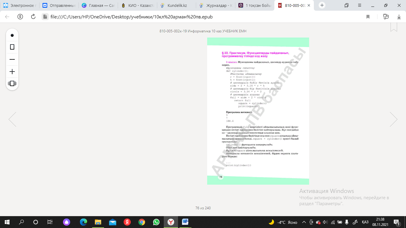ҚМЖ. 10 сынып. Практикум. Функцияларды пайдаланып, программалау тілінде код жазу.