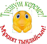Рефлексия: «Кім ортаға...» жаттығуы. Есімдері жазылған таяқшалар ішінен жауап беру үшін кез келген таяқшаны кездейсоқ тәртіппен алып, баланың есімін атау. Есімі аталған бала топ алдына шығады. Бүгінгі сабақта жаңа білімді түсінгені, қандай жаңа сөздер үйренгені, өзінің бүгінгі әрекеті туралы өзіндік ой айтады. Жаттығу осылай жалғасын табады. |