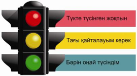 «Бағдаршам» әдісі: •? – барлығын түсіндім; •? – аздап түсіндім; •? – қиын болды. |