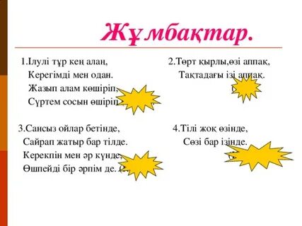 Тыңдалым,айтылым. Атқа міну көбелек қуу- қозы бағу- су тасу- Айтайық Ой қозғау Жұмбақ