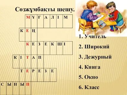 3.Айтылым. 3-тапсырма Сөздер мен сөйлемдерді сәйкестендіріп айт. Есіңе сақта! Біз оқушымыз Олар -оқушылар Сергіту сәті Айтылым Оқушы қажеттіктеріне қарай қолдау көрсетіп, қосымша түсіндіреді ЕББҚ (Зейін тапшылығы және гипербелсенділік синдромы (ЗТГС) жеке қолдау көрсетіледі Жазылым 4 – тапсырма. Көп нүктенің орнына керекті сөздерді қойып, көшіріп жаз. Қосымша тапсырма Жазылым Сөзжұмбақ шешкізеді. |