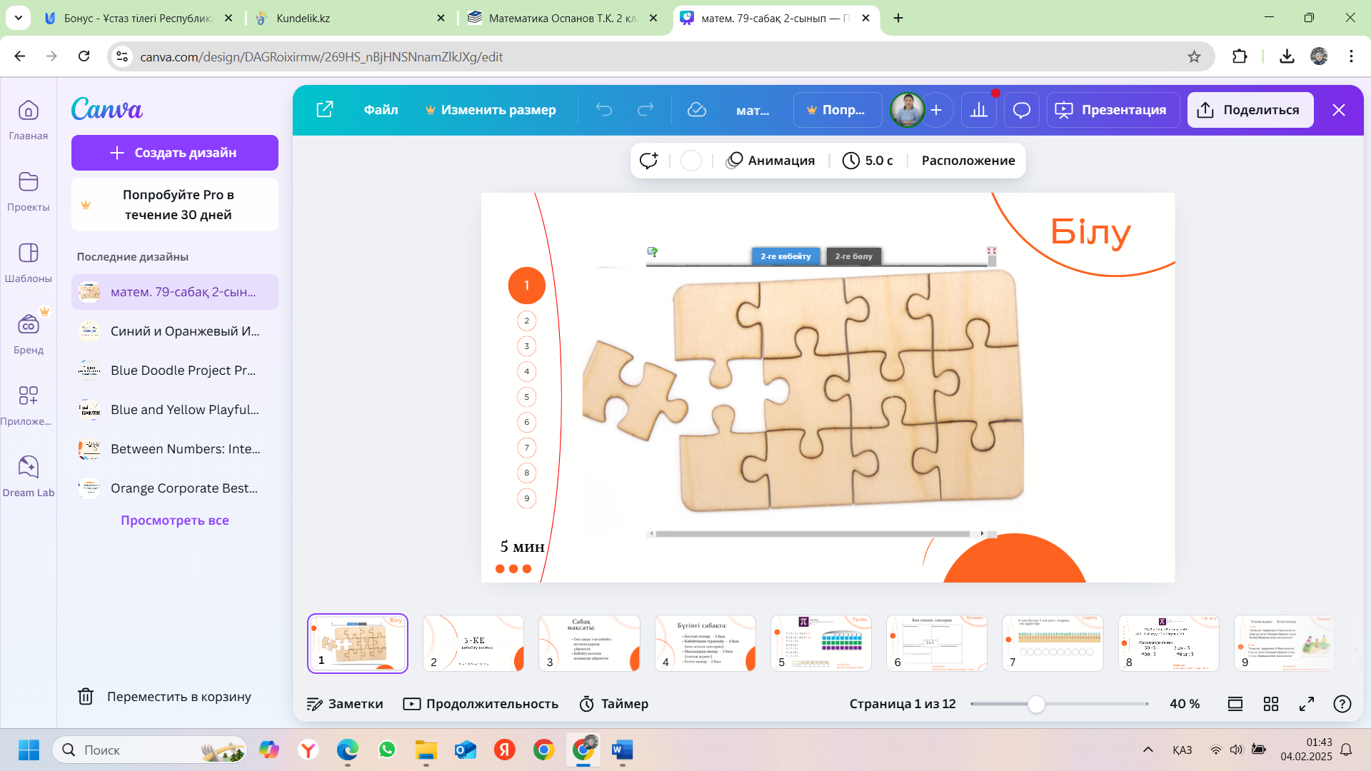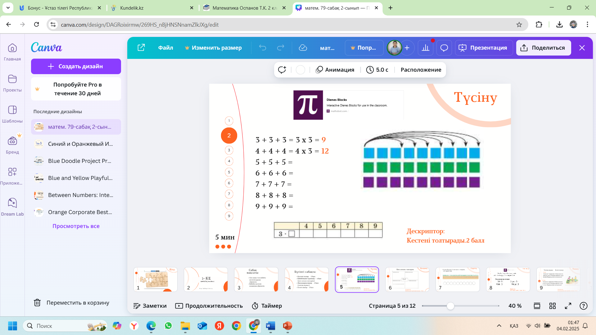 ТҮСІНУ 5 мин 9:40-9:45
