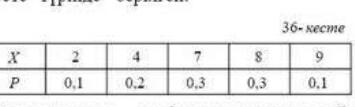2-тапсырма Төрт сан арифметикалық прогрессия құрайды және олардың ортаңғы мүшелері 10 және 14. Егер ортаңғы мүшелерінің ықтималдықтары шеткі мүшелерінің ықтималдықтарынан 4 есе артық болса, онда кездейсоқ шаманың үлестірім заңын анықтайды. |