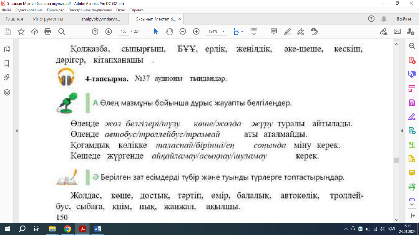 Балалар жағымды ахуал қалыптастырады. Оқушылар суреттегі көліктерге байланысты өз ойларын білдіреді. Оқушылар тыңдалым мәтінін тыңдайды. Мәтінді тыңдап, өлең мазмұны бойынша дұрыс жауапты белгілейді; Ойларын дәлелдейді. |