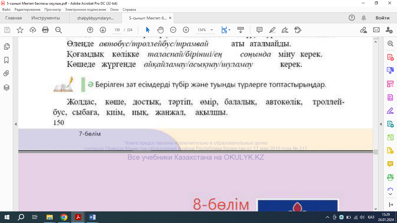 1-топ. Ә. Берілген зат есімдерді түбір және туынды түрлерге топтастырыңдар.