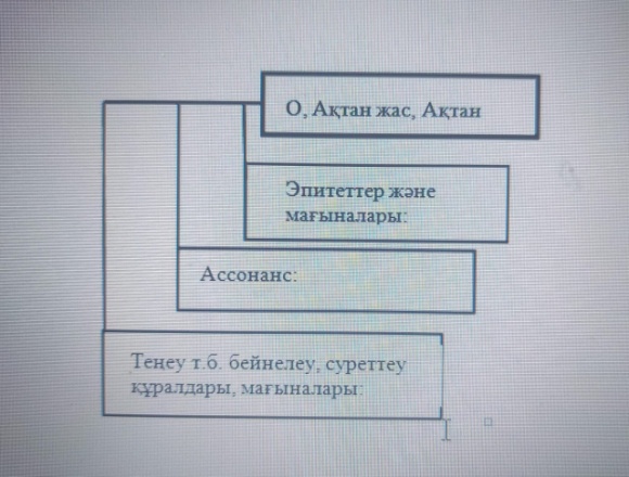 түсіндір. НЕЛІКТЕН? Неліктен ақын «О, Ақтан жас, Ақтан жас» өлеңінде: қажыма, Ақтан, қажыма, Жетерсің, әлі жетерсің! – дейді? НЕГЕ? Неге ақын Ақтан жасқа үміт артады? ҰСЫН Өлеңді мәнермен жатқа айт. 3-тапсырма Өлең мазмұнынан 4 бейнелеу құралын анықтап, тілдік бейнелеу, суреттеу құралдарын сатылай кешенді талдау арқылы талда.