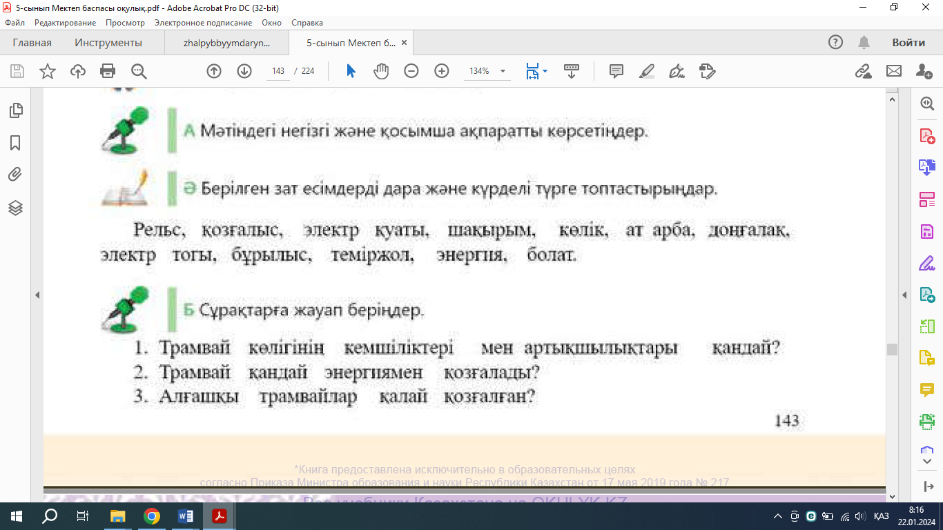 5.1.3.1 тыңдалған мәтіннің мазмұнын түсіну, негізгі және қосымша ақпаратты анықтау; 5.4.2.2 зат есімдердің мағыналық түрлерін мәнмәтін аясында жалғаулар арқылы түрлендіріп қолдану. |