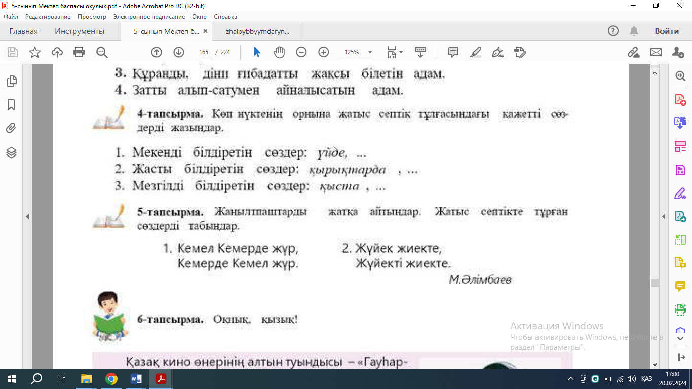 5-тапсырма. Жаңылтпаштарды жатқа айтыңдар. Жатыс септікте тұрған сөздерді табыңдар.