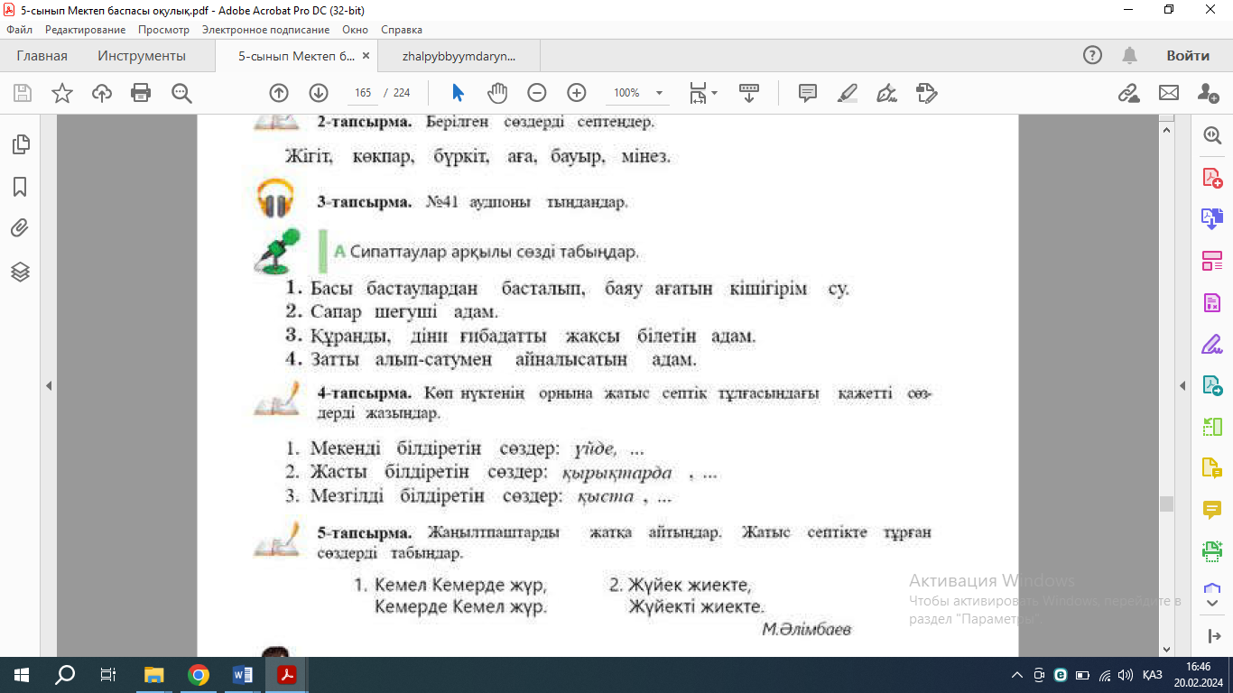 ҚМЖ 5-сынып. Ер жігітке тән қасиеттер. Септік жалғауы.