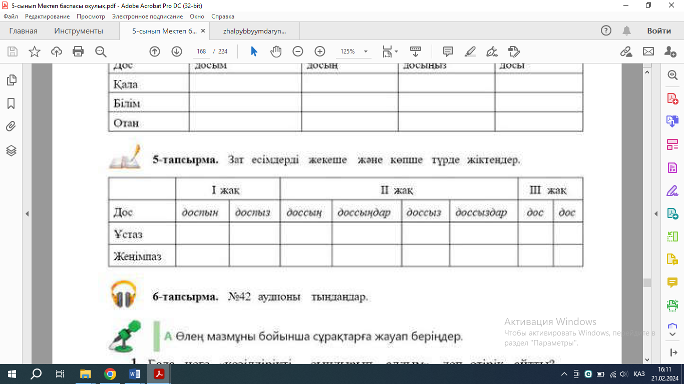 ҚБ Дескритор бойынша барлық қадамды орындаған оқушылар 3 ұпай иеленеді. /3 ұпай/ 2-топ. 4-тапсырма. Берілген зат есімдерді тәуелдеңдер.