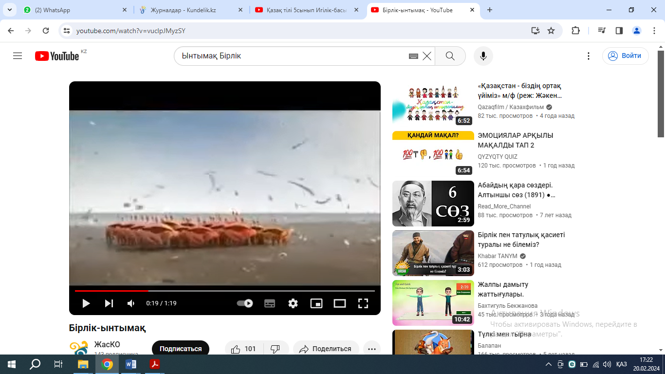 Балалар жағымды ахуал қалыптастырады. Оқушылар жаңа тақырыпты анықтау мақсатында өз ойларын білдіреді. Бейнероликі тамашалап, ой түйіндейді. Сабақтың тақырыбы мен мақсаты анықтайды. |