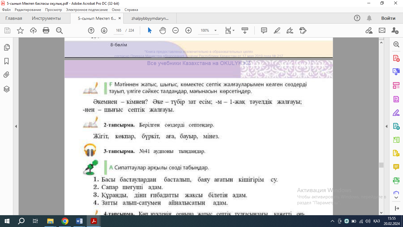 Жұптық жұмыс. 2-тапсырма. Берілген сөздерді септеңдер.