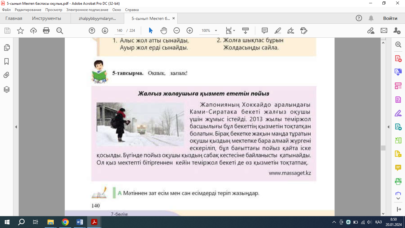 • Мәтінді оқып, мәтіннен зат есім мен сан есімдерді теріп жазады.