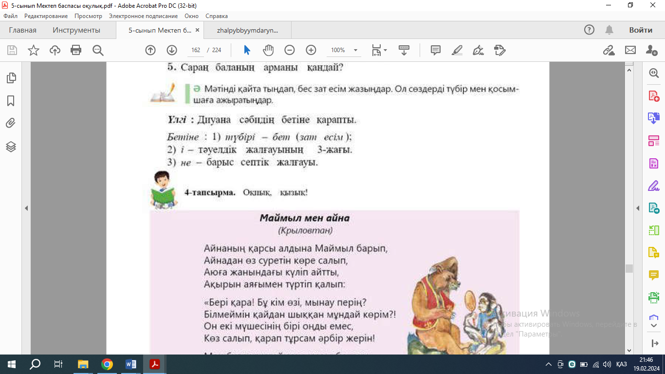 А. Өлеңнен септік жалғаулы сөздерді тауып жазыңдар. Ә. Өлеңнен тәуелдік жалғаулы сөздерді тауып жазыңдар.