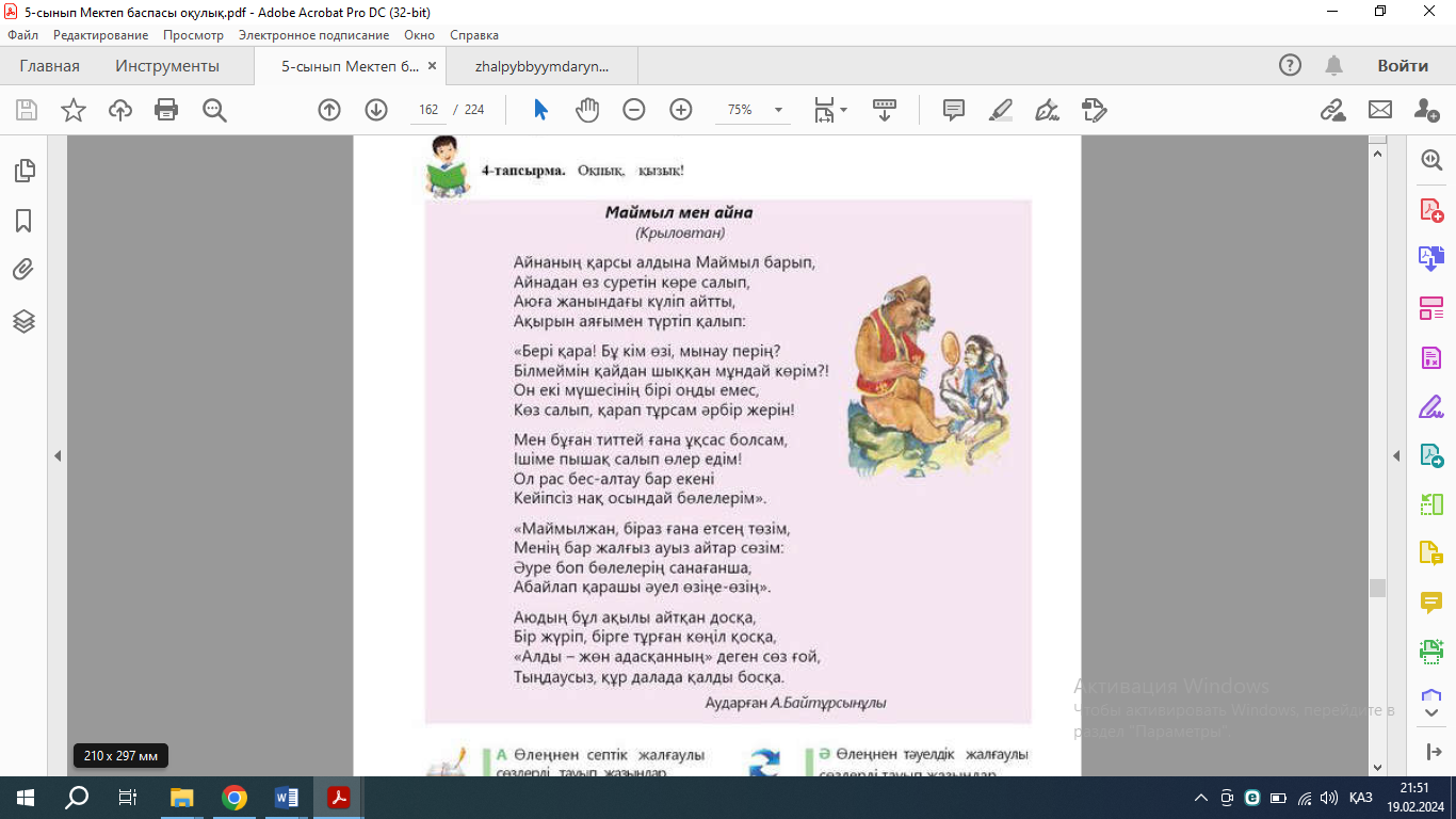 ҚБ Дескритор бойынша барлық қадамды орындаған оқушылар 5 ұпай иеленеді. /5 ұпай/ ІІІ.ОҚЫЛЫМНАН КЕЙІН. 4-тапсырма. Оқиық, қызық!