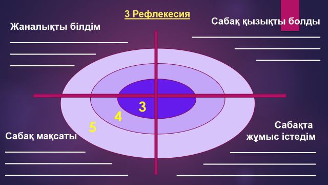 Сабақтың соңы 5 мин Рефлексия 3 мин |
