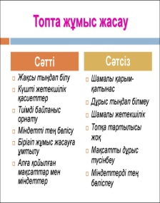 Дескриптор 5 балл -топпен жұмыс жасайды -мәтінді оқиды