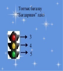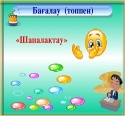 Мұғалім оқушылардың сабаққа қатысқан белсенілігіне қарай 1-10 баллдық жүйе бойынша әр оқушының өзіне тиісті баллын қойып бағалайды. Сонымен қатар, оқушыларды ынталандыру үшін «Қошеметтеу» әдісі арқылы бағалайды.
