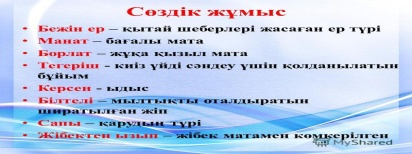 №3-тапсырма: Оқулықта берілген тапсырмаларды орындатады, бақылайды, мысал, үлгі көрсетеді. 6-тапсырма Жеке жұмыс Мұғалім бағыт- бағдар береді. |