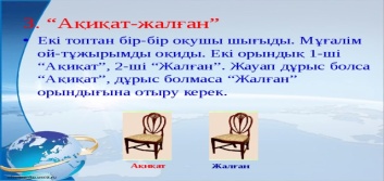 Жазылым Айтылым «Жалған, шындық» кестесі бойынша жұмыс жасайды.