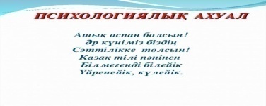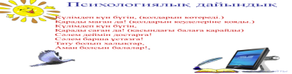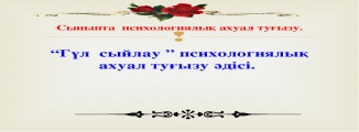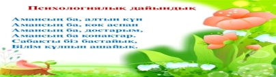 Ұйымдастыру кезеңі: (Ұ) “Гүлмен тілек” әдісі арқылы оқушылардың бір-біріне жақсы тілек айту арқылы жағымды ахуал қалыптастыру. |
