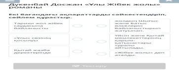 Айтылым Мұғалім ұсынған кестедегі сөйлемдерді сәйкестендіреді.