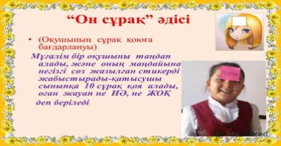 Тиімділігі: оқушыны бір-біріне тілек айту арқылы жақындастырады, көңіл күйін көтереді, бауырмалдығын оятады. |