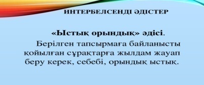 Жазылым Оқушылар кезекпен «Ыстық орындыққа» отырып, сұраққа жауап береді.