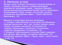 Тапсырма: Жұптық жұмыс Оқулықта берілген тапсырмаларды орындатады, бақылайды, мысал береді. 3-тапсырма Топтық жұмыс