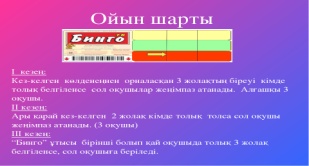 Жазылым “Бинго» ойыны. Кім торды тез толтырады?