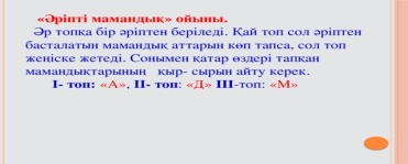 Айтылым Табиғат-природа-nature Тіл табысу-найти общий язык Бағынады-подчиняется Тану-распознание Ұмтылыс-стремление- Әртүрлі-разное-other Айтылым Рөлдік ойын. Берілген тапсырма бойынша сұхбат алады. «Жуан, жіңішке» сұрақтарды қолданады.