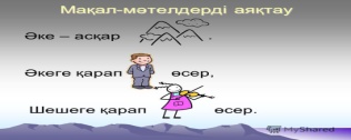 Жазылым Берілген мақал-мәтелдердің мағынасын ашып түсіндіреді.