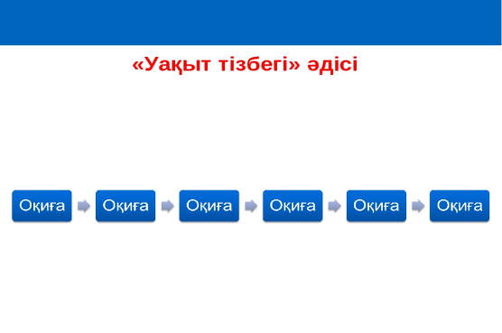 «Уақыт тізбегі» әдісі арқылы повестегі оқиғалар тізбегін құрады.
