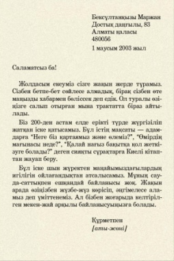 Топпен жұмыс жасай отырып, кейіпкерге хат жазады |