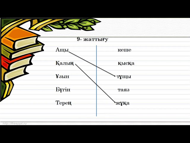 ФС тапсырмасы 7-жаттығу Антоним сөздерді бір-бірімен сәйкестендір