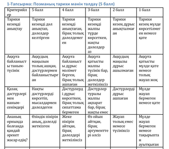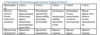 8.1.1.1 Әдеби шығарманың жанрына байланысты сюжеттік желілерін, эпилог, прологтарды анықтау. 8.3.1.1 Шығарманың тақырыбы мен идеясын осы тектес басқа шығармалармен салыстырып, тарихи және көркемдік құндылығын бағалау. |