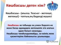 Көшбасшы қандай болатынын білетін болады Көшбасшының жеке қасиеттерін анықтауды үйренеді |