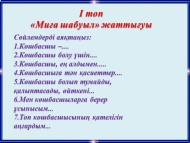 КӨШБАСШЫ ҚАНДАЙ БОЛУЫ КЕРЕК? Топтың, Кеңестің жұмысына қатысу арқылы оқушы белгілі бір дәрежеге ие болады. Әр топтағы адамдардың дәрежесі де әртүрлі болуы мүмкін. Біреулердің дәрежесі жоғары, біреулердікі төмен. Біреулердің тілін алып, тапсырмаларын орындаса, біреулердікін орындамайды. Олай болатын себебі, топтардың белгілі бір көшбасшысы болуы керек. Жаңа тақырып 1-тапсырма «Ашық микрофон» әдісі Көшбасшы болу үшін өзіңді қай жағынан көрсете білуің керек деп ойлайсың? Ж: Көшбасшы жан-жақты дамыған,білімді, тәрбиелі, өзін қоғамдық ортада еркін сезінетін жан болуы тиіс ЕБҚ Сенің ойыңша көшбасшы деген кім? Оның бойында қандай қасиеттер бар? 2-тапсырма Мектебіміздегі көшбасшы кім? Ол қандай жұмыстар атқарады? Сенің оған ұқсағың келе ме? Мектеп ережесіне бағынбайтын оқушылар туралы айта аласың ба? Ж: Мектептегі белсенді оқушылар туралы айтады. 3-тапсырма «Топтастыру» әдісі Жұптық жұмыс жасайық. Парталасыңмен «Көшбасшылық қасиеттері» топтастыруын жасаңдар. Көшбасшының бес қасиетін атаңдар.