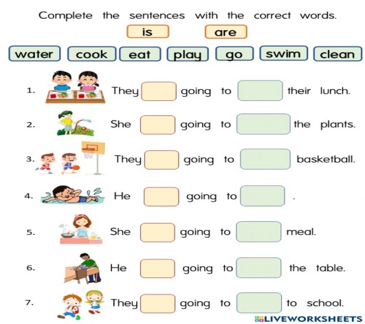 LANGUAGE NOTE We use be going to + infinitive: I’m going to play football. NOT I’m going to playing football. In the negative form, we use not + going to: He isn’t going to come. NOT He don’t going to come