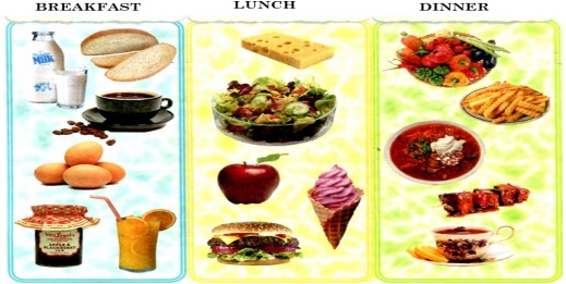 • Learners listen to Paul, a professional swimmer, and complete his daily menu with the words below. ANSWERS 1 egg 2 cheese 3 yoghurt 4 bananas 5 sugar 6 pasta 7 beef 8 tomatoes 9 chicken 10 potatoes 11 pizza 12 apples • Learners tell the class what Paul eats every day. ANSWERS For breakfast Paul eats three egg sandwiches with bacon and cheese, a bowl of yoghurt with strawberries and bananas, and four slices of bread topped with sugar. Then, at lunch, he has one plate of pasta with tomato sauce, two beef burgers and two bottles of sports drinks. Finally, he eats five pieces of roast chicken, two baked potatoes and seven slices of cheese pizza, followed by two apples • Learners answer the questions. Find someone in the class with the same tests ANSWERS 1 Sometimes 2✓ Every day 3 ✔ Sometimes 4 Never 5✓ Every day 6 Often 7 Sometimes 8 Every day 1 I sometimes eat out. 2 I eat homemade food every day. 3 I sometimes eat junk food like burgers. 4 I never drink fizzy drinks. 5 I drink water every day. 6 I often order takeaway. 7 I sometimes eat snacks between meals. 8 I eat fruit every day. • Learners answer the question. ANSWERS A: For breakfast, I have a bowl of yoghurt and some fruit. B: For breakfast, I have bacon and eggs. |
