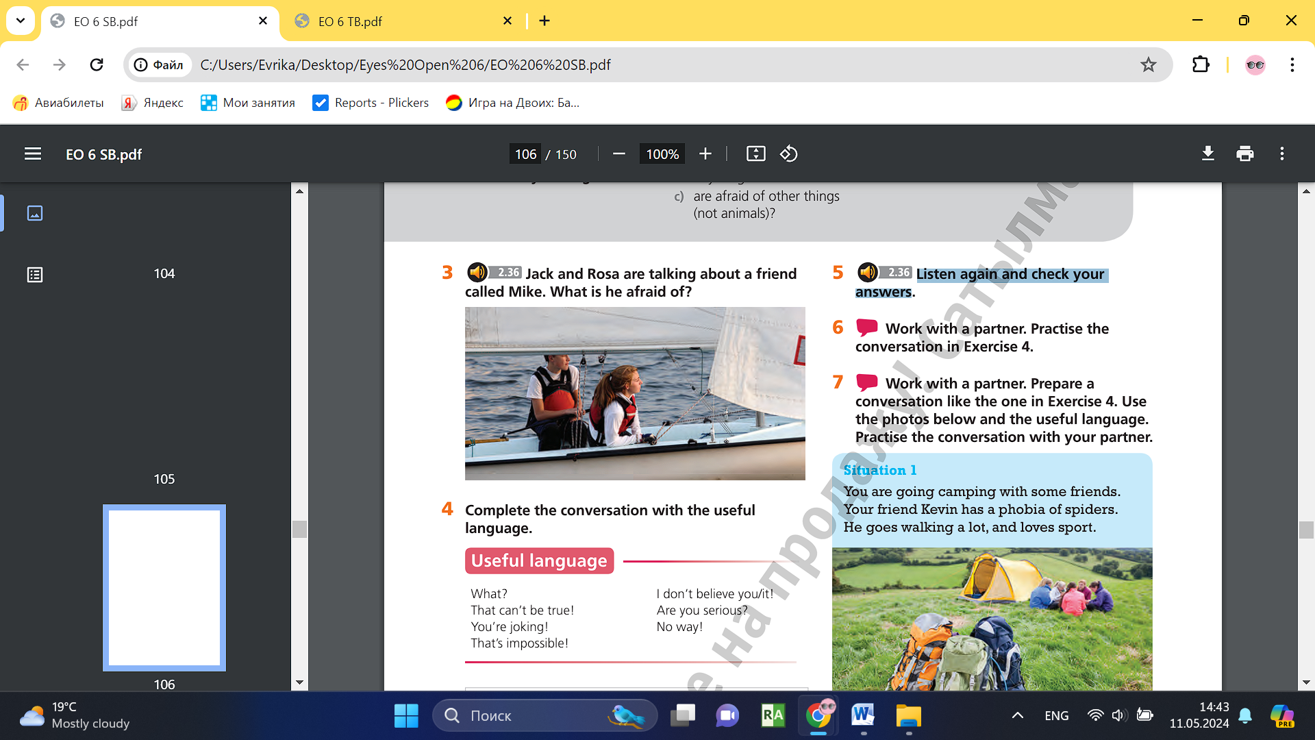 Learners will be able to: - watch teenagers talking about what they are afraid of. - listen to two friends talking about a friend who doesn't like sailing. - practise expressing surprise |
