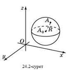 Бұл теңдік центрі А0(x0; y0; z0) нүктесінде және радиусы R болатын сфераның теңдеуі деп аталады (24.2-сурет).