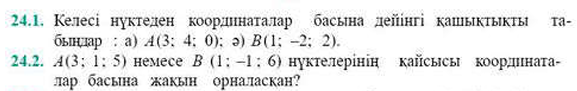А(x; y; z) нүктесінің Oxy, Oxz, Oyz координаталық жазықтықтардағы ортогональ проекцияларының сәйкесінше координаталары (x; y; 0), (x; 0; z), (0; y; z) болатынын байқаймыз.