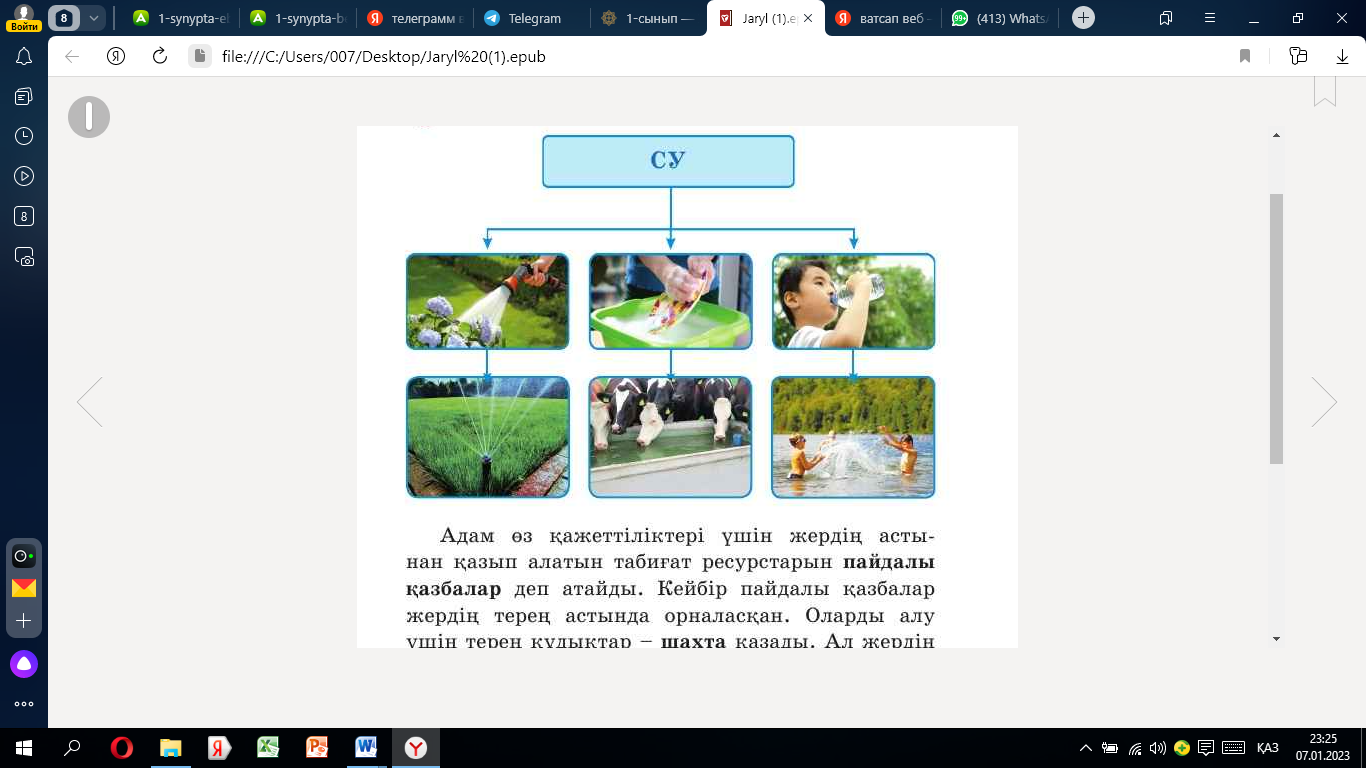 1. өсімдіктен тағы не жасайтынын жазады 2.судың тіршілік үшінмаңызын анықтайды 1. шартты белгілерін анықтайды 2.қазба байлықтарды жазады 3.қорытындылайды |