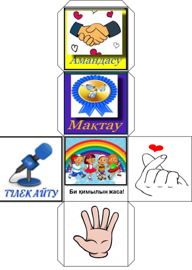 2. “Кубизм” әдісі арқылы оқушылар кубиктегі бейнелерге қарай отырып,бір-біріне тілек айту арқылы жағымды ахуал қалыптастыру. 3. Оқушыларды «Әлеуметтік желілер» әдісі бойынша топтастыру. Топтар: 1-Инстаграм 2- Тик ток 3-топ Телеграмм